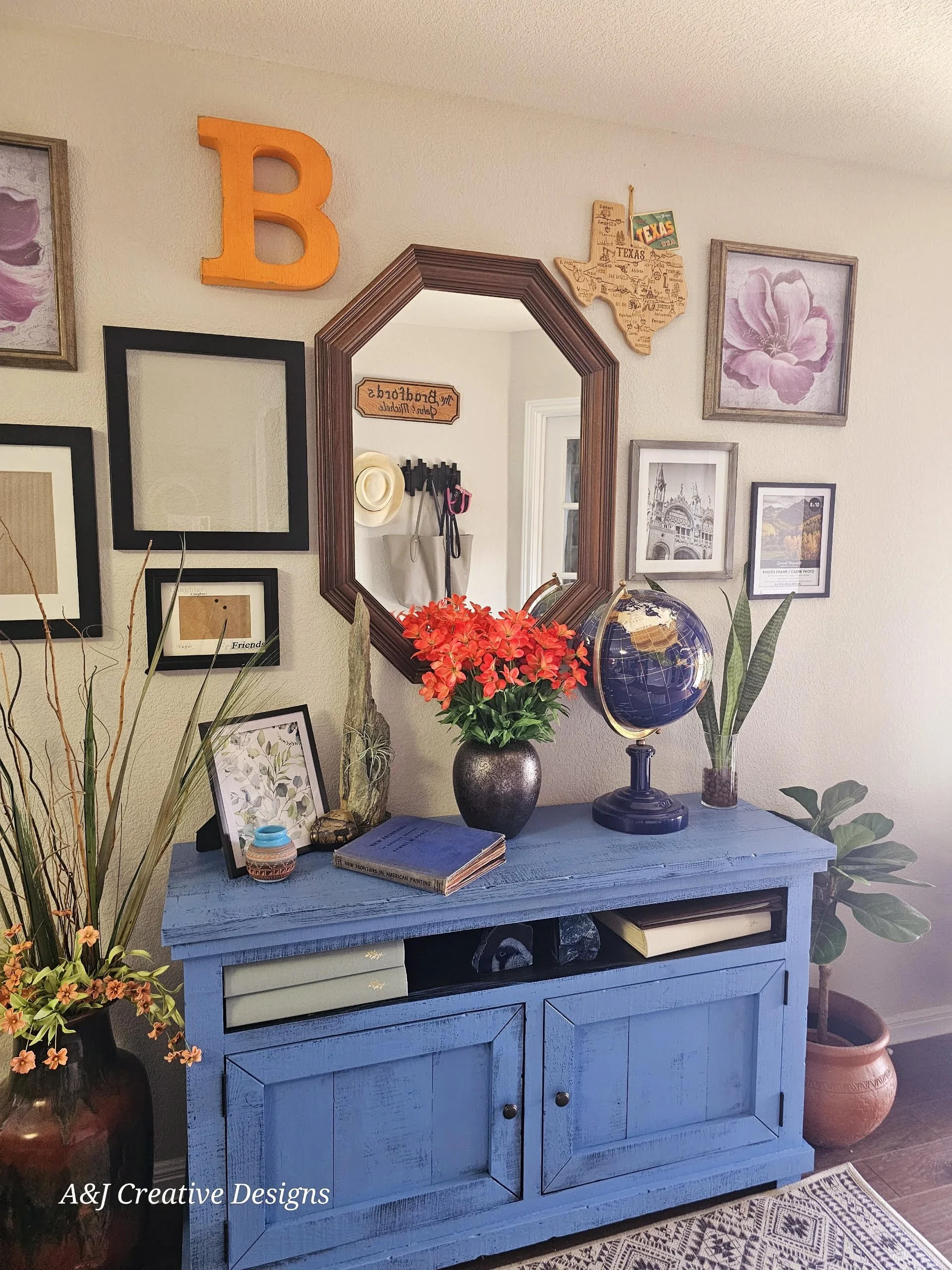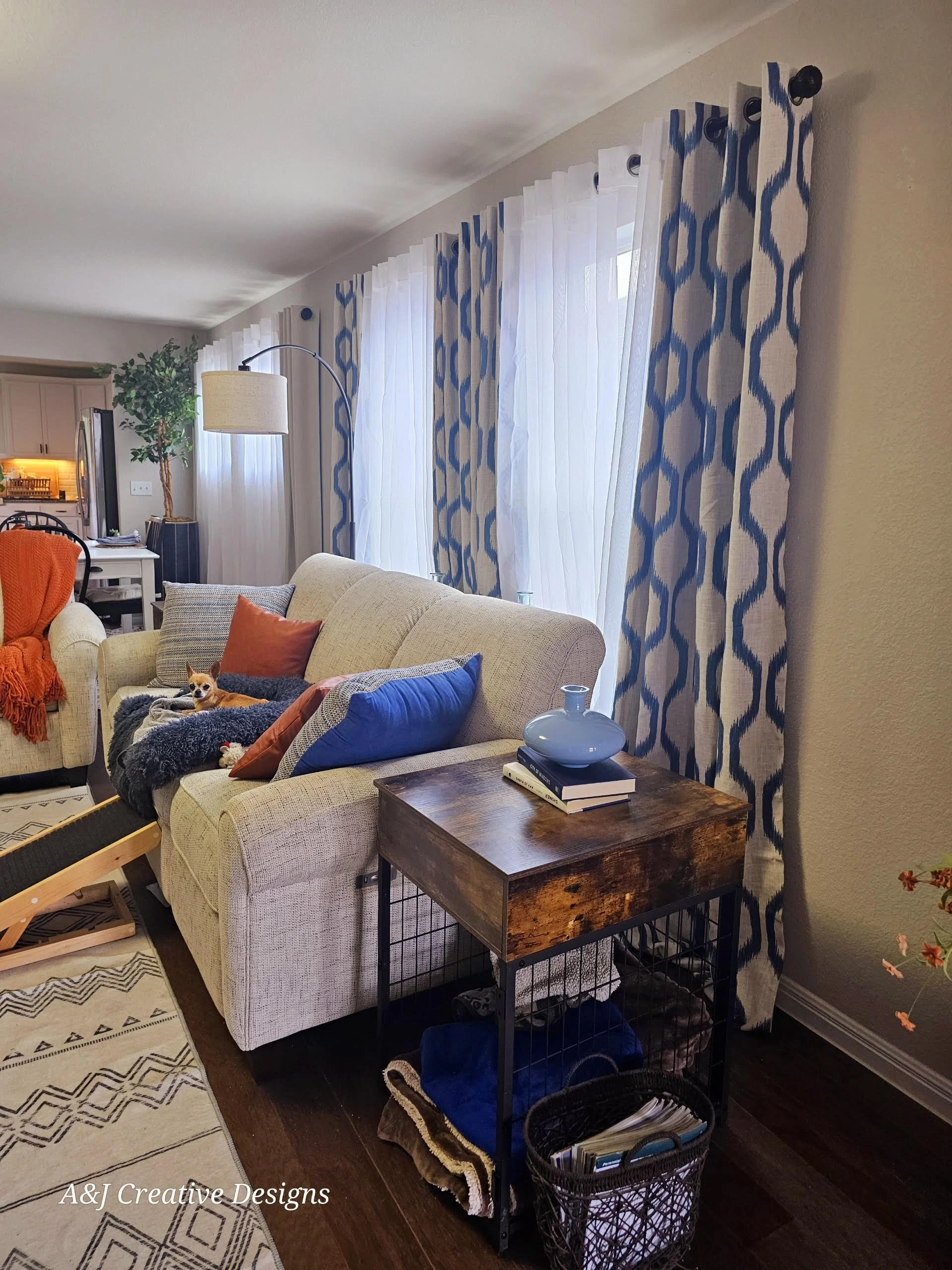 The modern farmhouse aesthetic inspired by the Blue Ridge Mountains beautifully marries rustic charm with contemporary elegance. Picture a serene palette dominated by soft blues, reminiscent of the misty mountain mornings, paired with muted oranges that evoke the warmth of sunset skies. This harmonious color scheme creates a tranquil atmosphere that invites relaxation and comfort. Natural materials like reclaimed wood and stone seamlessly blend with modern furnishings, while accents of handcrafted artwork add unique character. Scattered accents, such as textured throws and artisan pottery, complete the look, evoking a sense of both homey nostalgia and stylish sophistication. In this design, every element tells a story, making your space a true reflection of nature’s beauty.